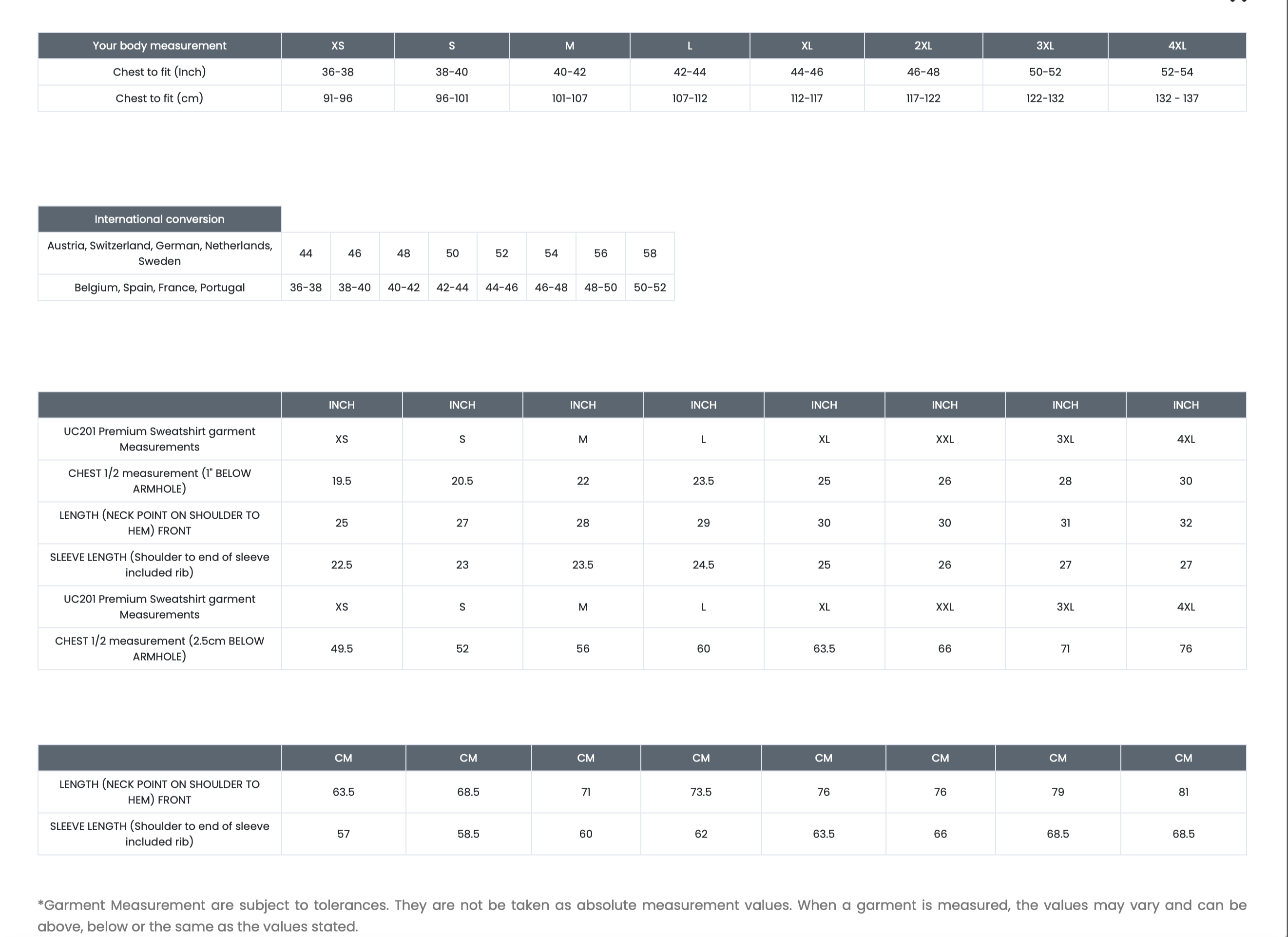 XS S M L XL 2XL 3XL 4XL